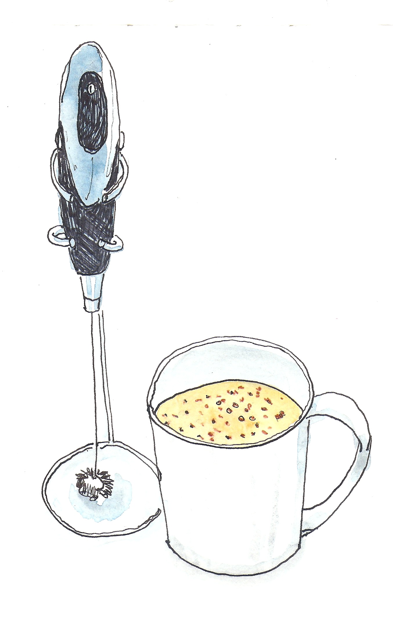 This is almost “Bulletproof Coffee”, which is my regular organic plus a little unsalted pure butter, then whipped into a frothy finish for a very smooth taste. The true recipe calls for some coconut oil, but – no thank you! It’s not for everyday, more of a special treat!