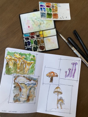 It’s been a while since my last post, summer got busy and focus on sharing my art was lost. Now that autumn (and even some snow!) has arrived, I’m working on getting that focus back. Art Safari is still having their Thursday sessions, this week was fungi. Mushrooms are delicious and a healthy diet addition. Also, they’re very fun to study and draw!