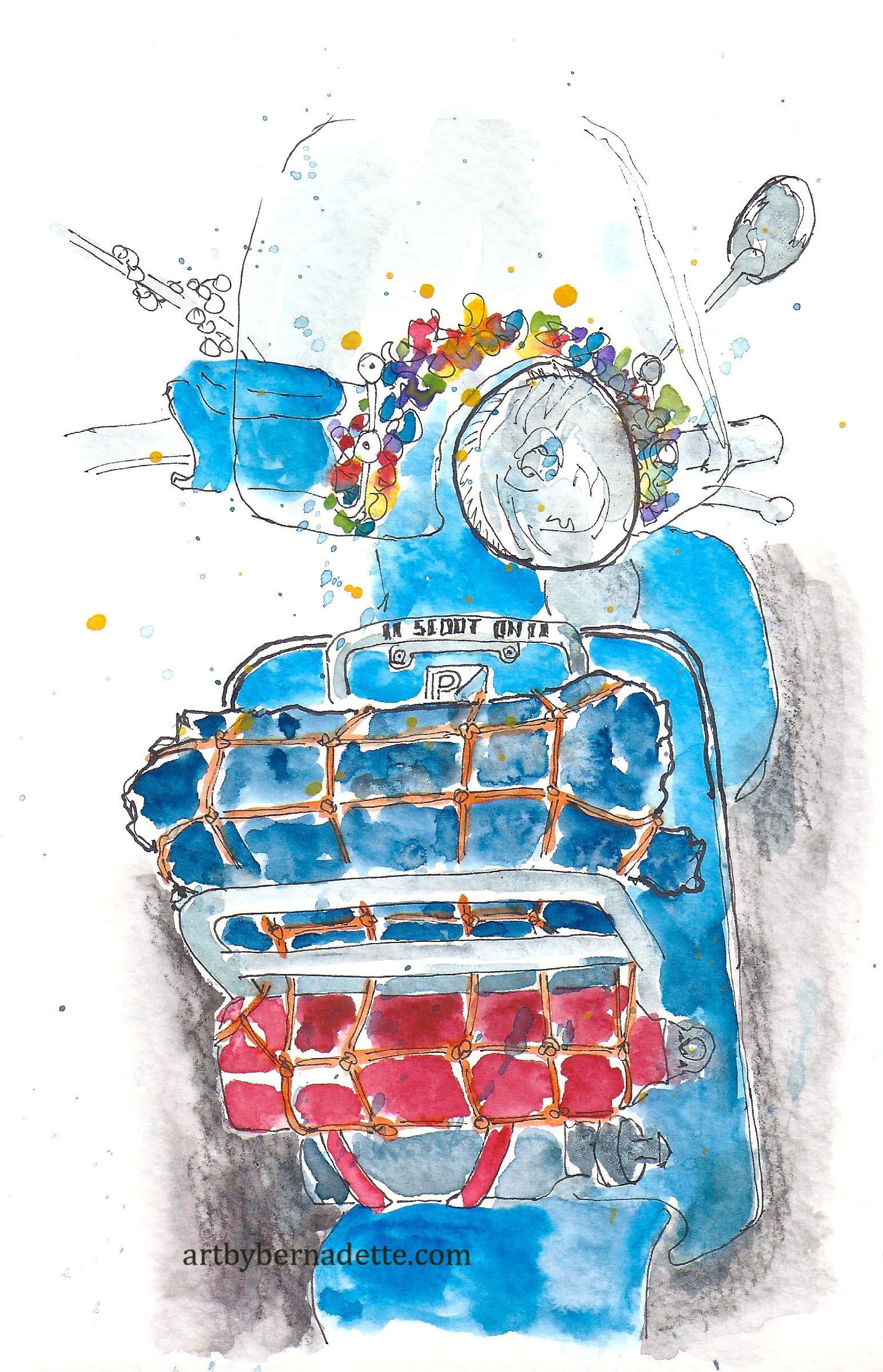 We found a few spots on a shady hillside to sit and sketch, mine was nestled between two donkeys. At one I was at the ‘wrong’ end, the other, near his head. I became rather infatuated with my nearby friend, as he/she posed rather nicely for me. (Yes, he was tied up, but still, I like to think he would’ve stayed anyway.)
